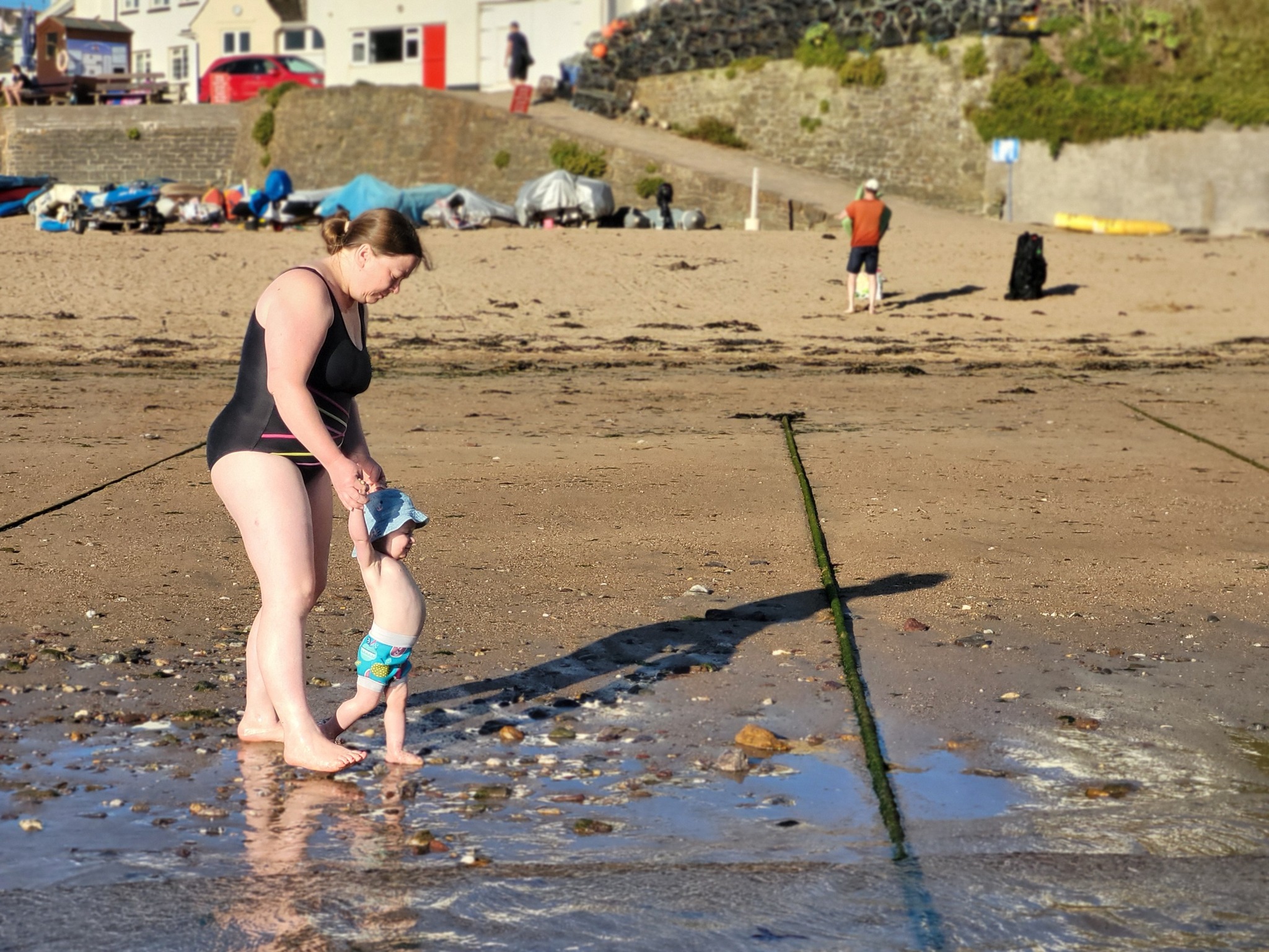 Mum paddling in daddy swimming spot