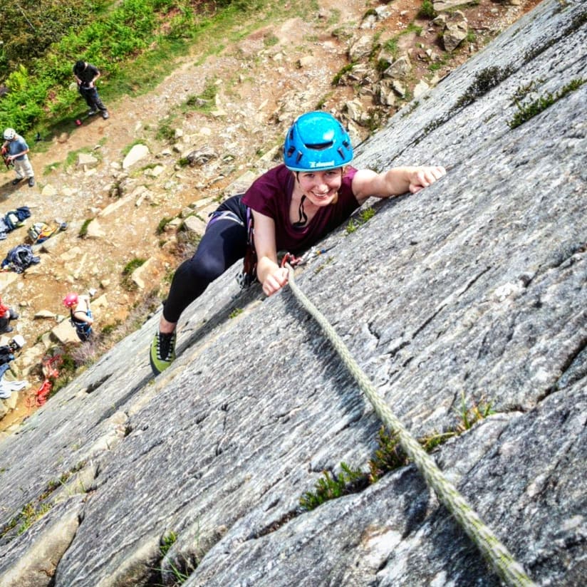 Newly leading Alex putting up ‘new’ routes on the upper crag and encouraging Albina to give them her first leads.