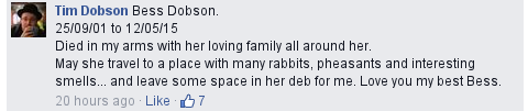 My darling dog Bess came to the end of her well lived life yesterday.