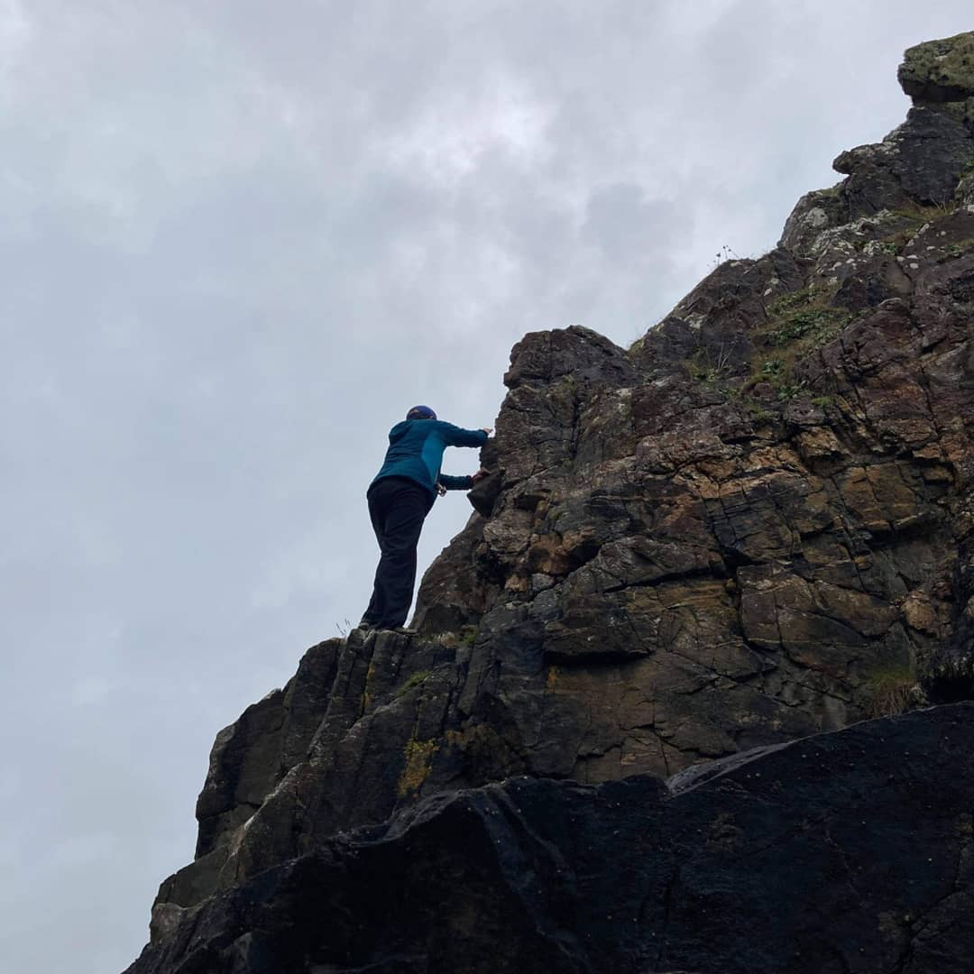 And on this sea stack, the way up had been slightly challenging. I reached the top. How would the descent be?