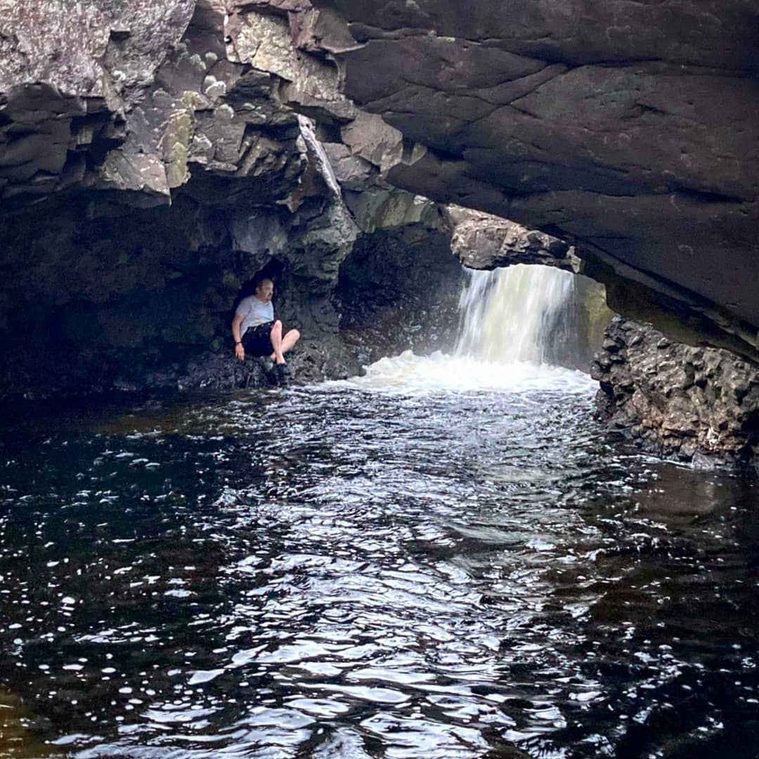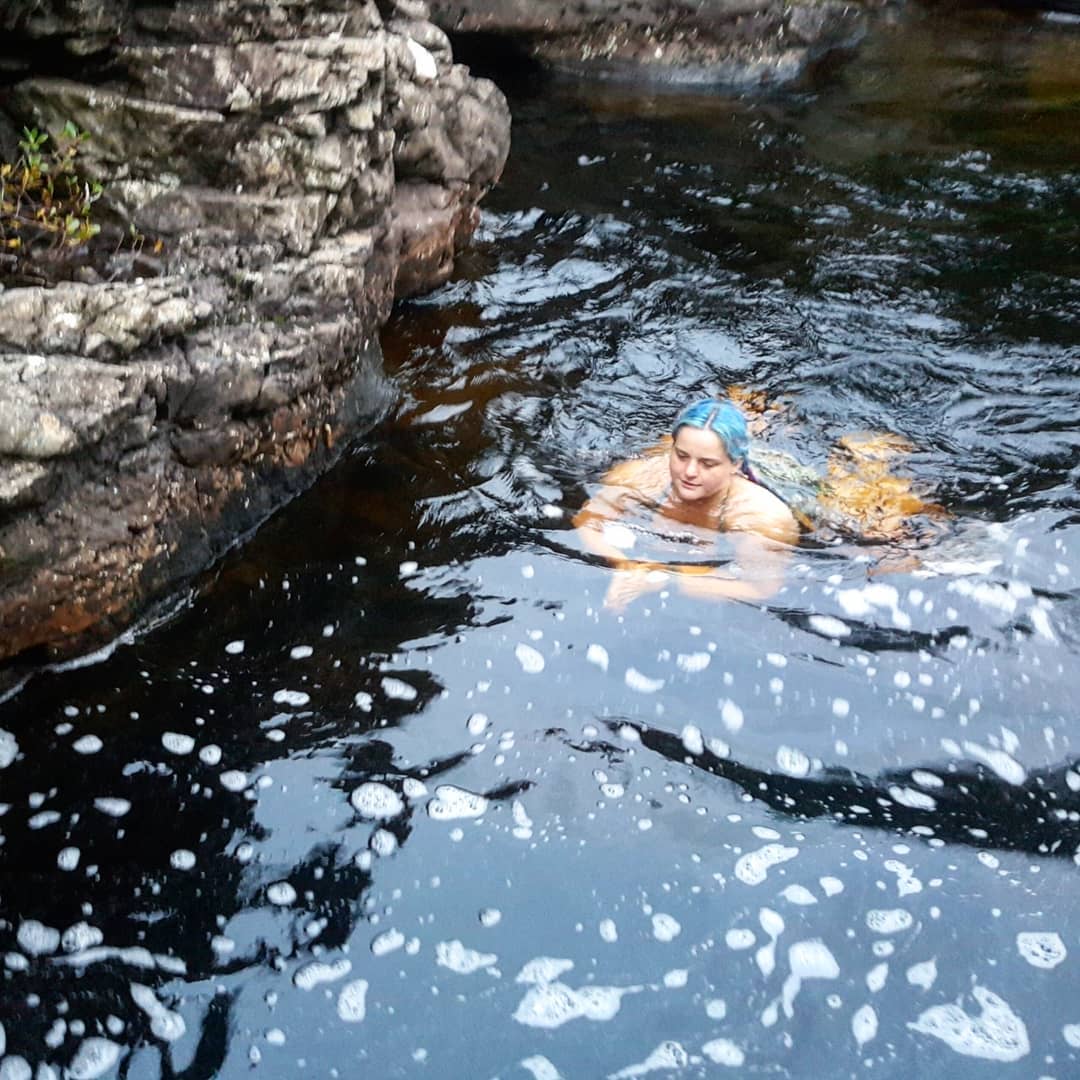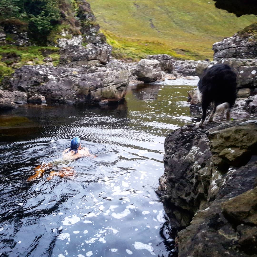 To get to this place, walk downstream mostly off piste, turning off the main path at the large boulder, following the side of the river.