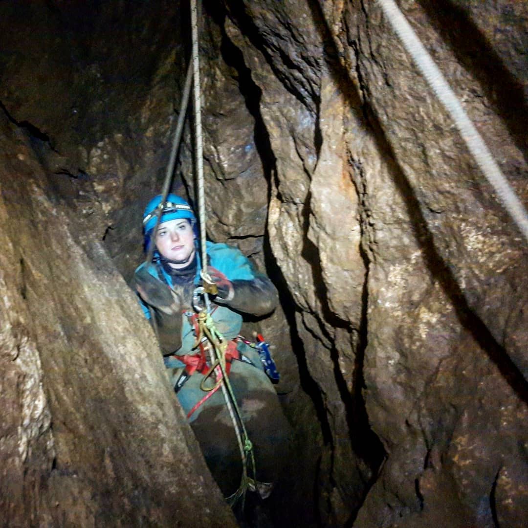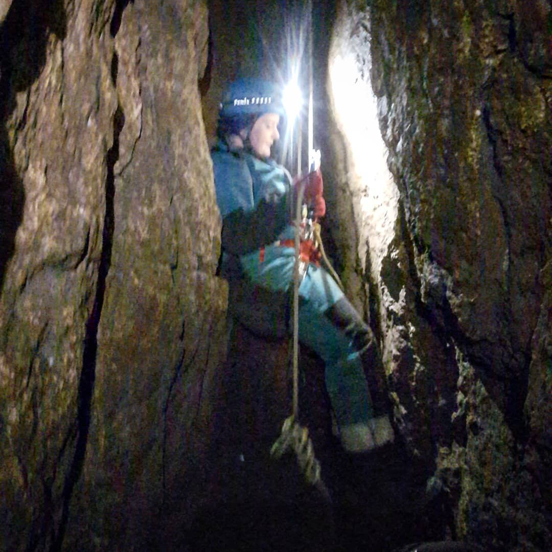 The pitch is well equipped with bolts from approximately the Tudor Caving era interspersed with newer-ish bolts, placed in a sparse ish array. A tudor era rope was also in situ. The rigging I did with the 15m rope, may not have been textbook but was safe and allowed us to descend to a halfway passage. The way on.