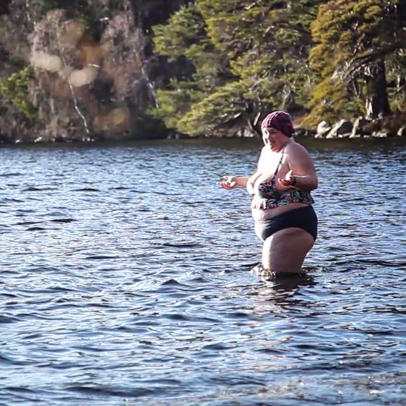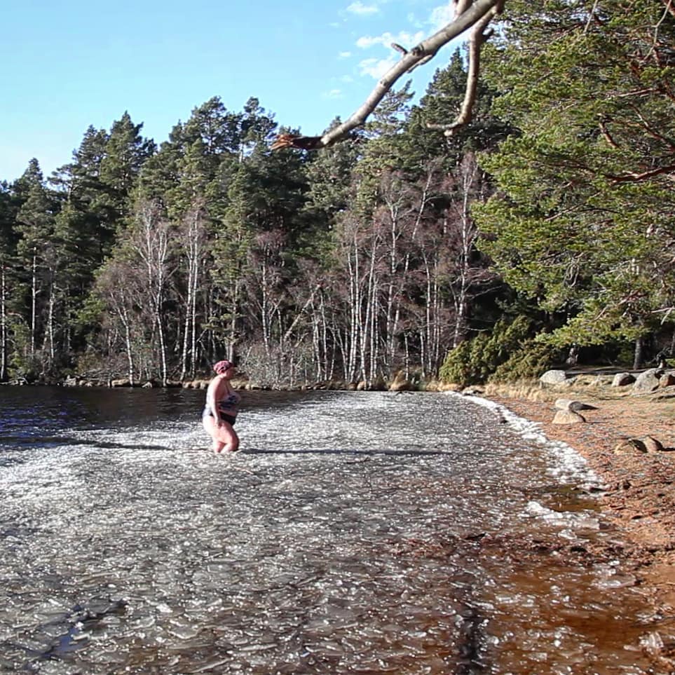 After a disappointing dunk, she walked back to the van, feeling slightly let down by the lake. “I don’t feel I’ve done it, I didn’t swim in it.” So the dream is still a dream and the icy lakes remain unconquered.