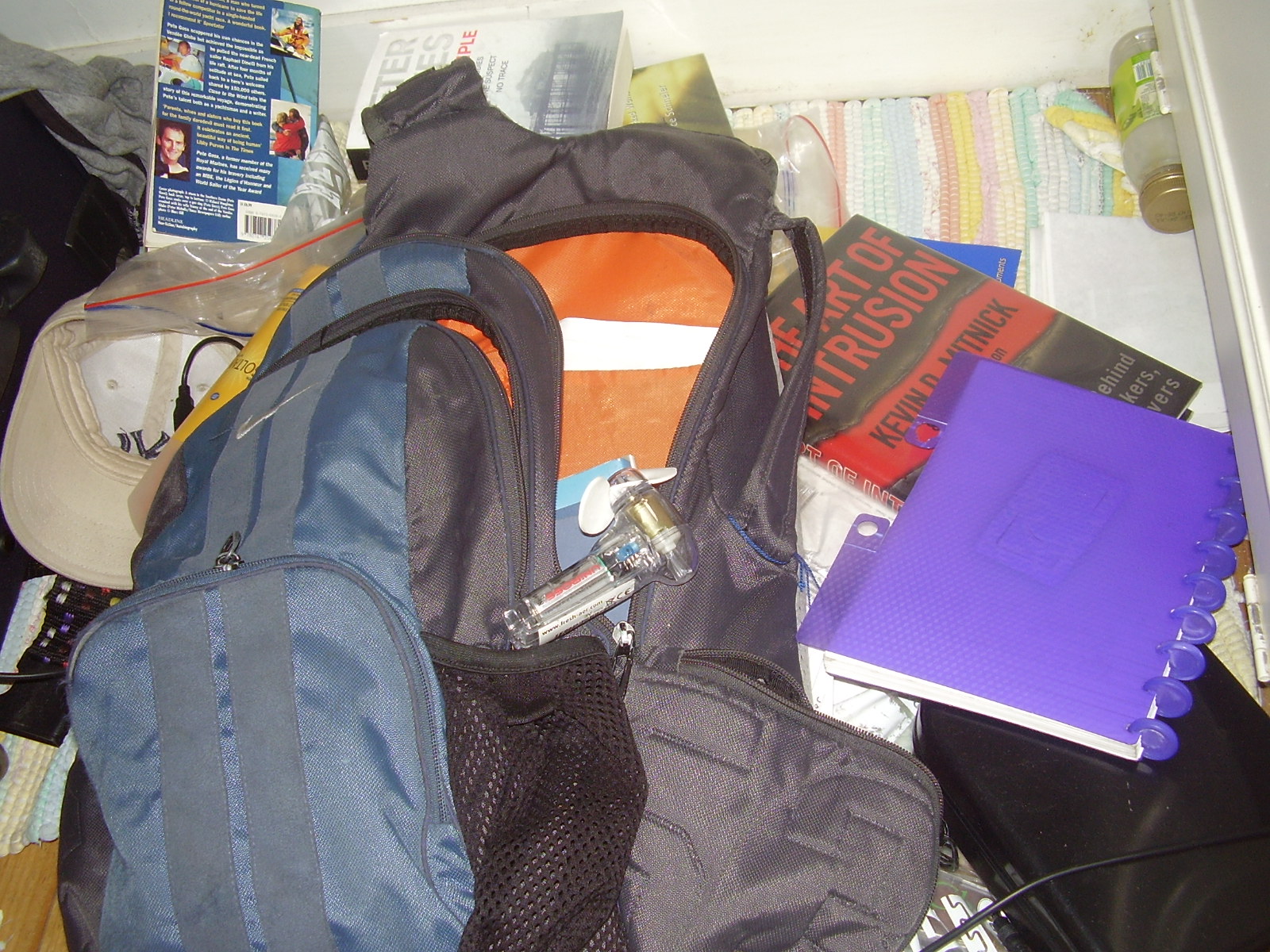 I was struck by one of the most recognisable items in the picture – The Art of Intrusion by Kevin Mitnick.