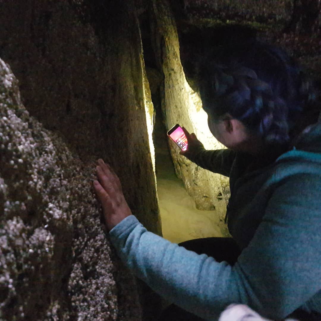 Suddenly we saw light through one! A cave!
