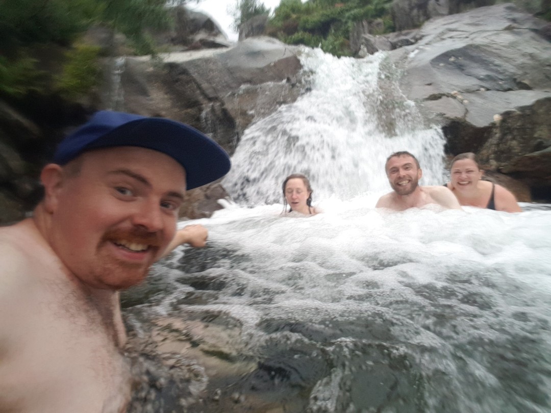 Washing off the cold in the brook with the Clan.